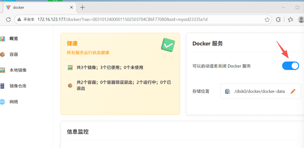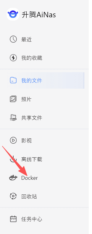 1.1 PC端登录NAS设备,在左侧导航栏中,找到“Docker”
