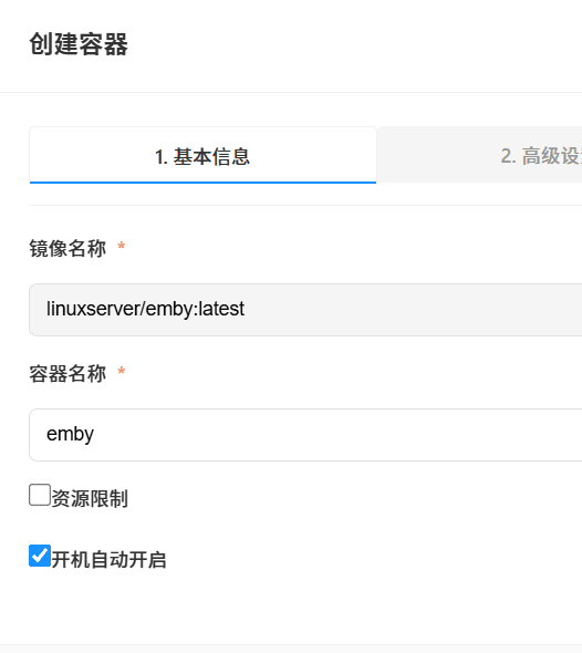 1.7 创建容器页面-容器名称可自定义,点击“下一步”